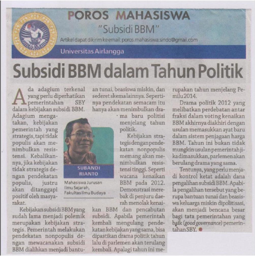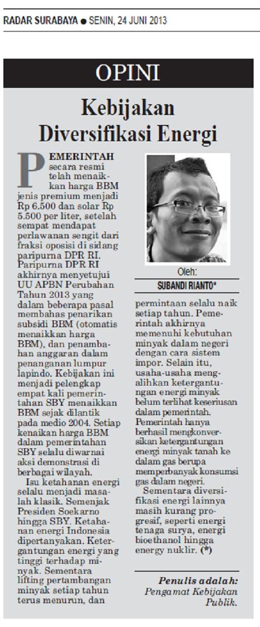 Opini dimuat Radar Surabaya 2013