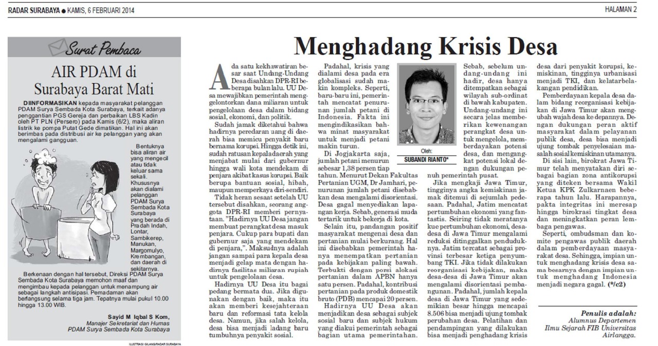 Opini dimuat Radar Surabaya, Kamis-6 Februari 2014