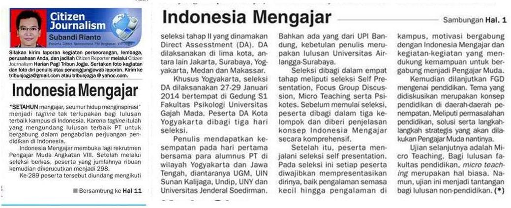 Liputan Dimuat Tribun Jogja, Sabtu, 8 Februari 2014