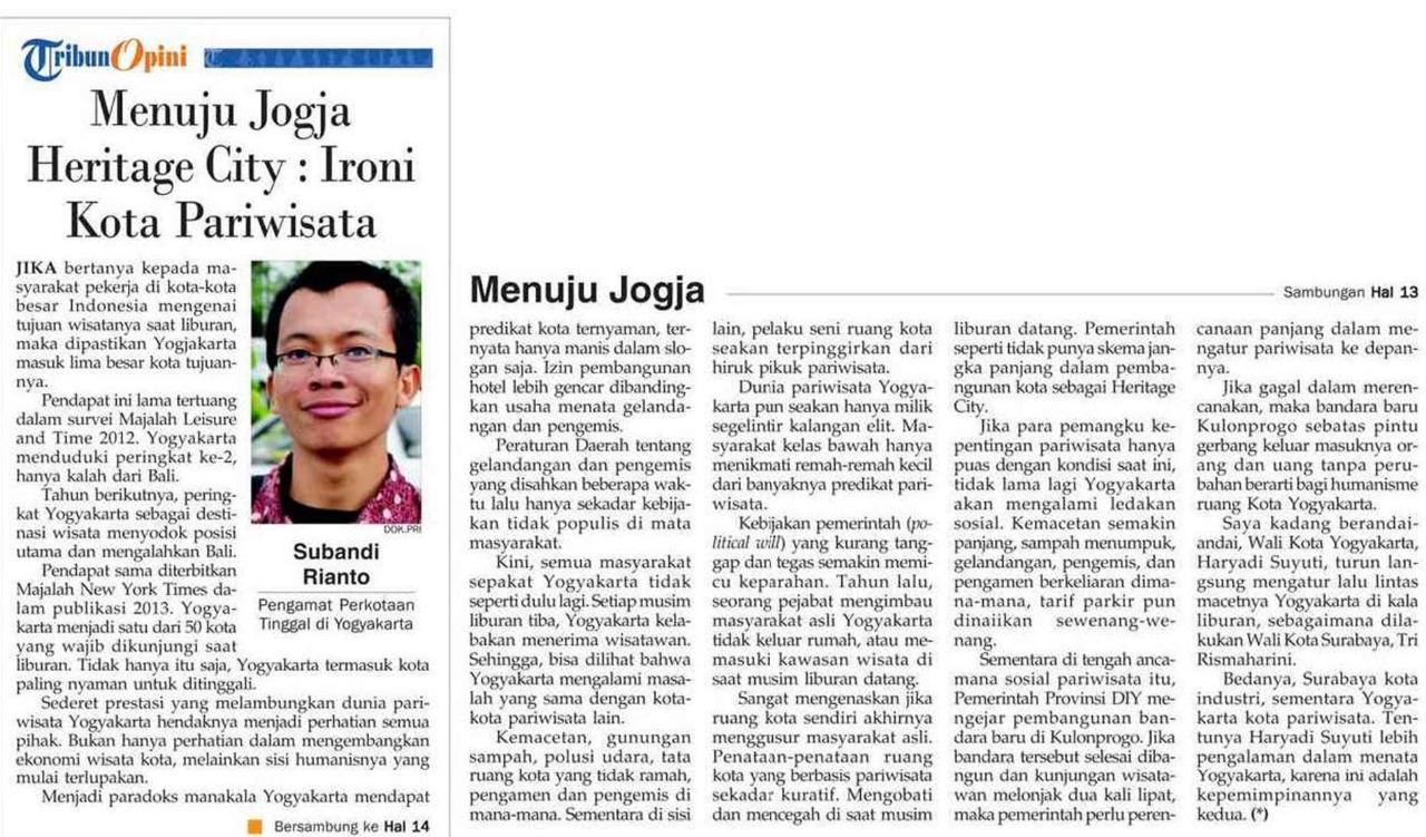 Opini dimuat Tribun Jogja, Kamis, 3 April 2014